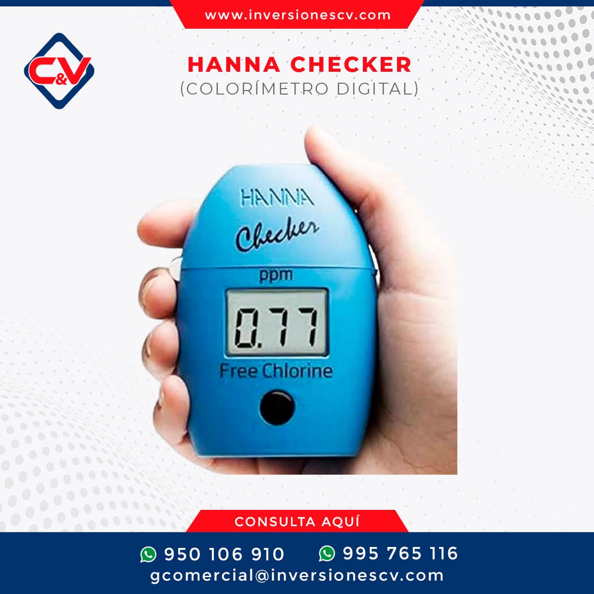 El Hanna Checker es un colorímetro digital de bolsillo diseñado para ofrecer mediciones rápidas y precisas de cloro residual. Combina la sencillez de los kits de pruebas visuales con la precisión de la instrumentación profesional, eliminando la subjetividad del ojo humano en la lectura de resultados.